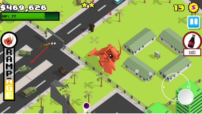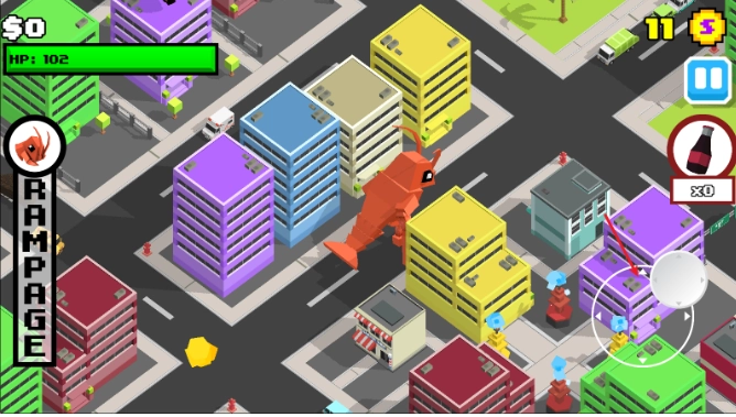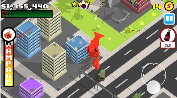 粉碎城市(SmashyCity是一款像素卡通风格的休闲解压闯关游戏。在这里,你将化身为一只强大的怪兽,在城市中肆意横行,尽情地破坏、粉碎眼前的一切!游戏没有任何规则限制,你只需随心所欲地砸烂建筑物、敲碎摩天大楼,用你那无与伦比的力量来释放内心的压力。与警察、军队展开激战,用导弹、激光甚至核弹来夷平整个城市,体验最纯粹的毁灭快感!