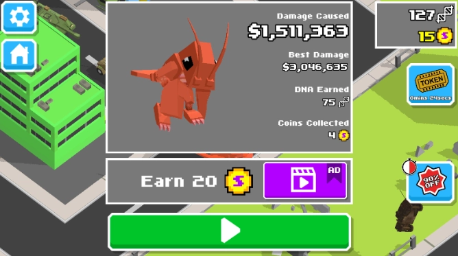 3.强化与进阶系统:玩家可以通过强化怪物使其变得更强,还能进入“狂暴模式”(RAMPAGE),变得无坚不摧,粉碎路上的一切。