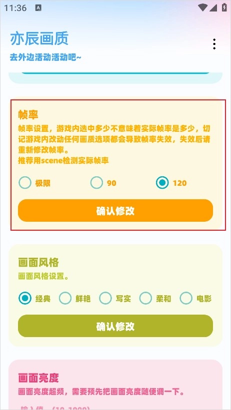 在首页向下滑动,找到【帧率】板块,选择120帧后点击确认修改就可以了。