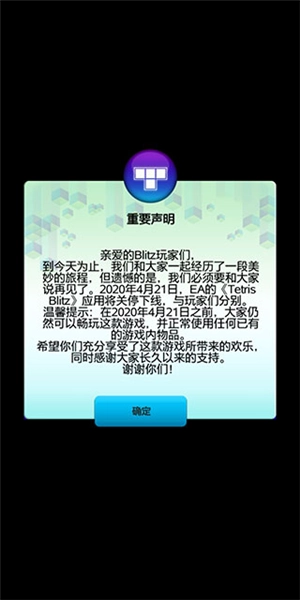 我们进入游戏时会看到游戏停服的重要公告,点击确定跳过就行。