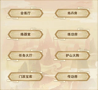 每个按钮图标都对应着门派里的各类建筑,大家可以根据自身需求进入不同建筑开展活动。