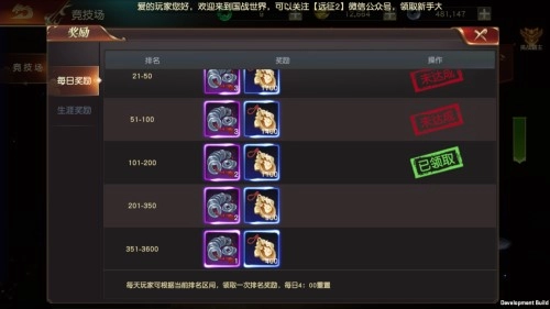 每日奖励规则:玩家可依据自身当前所处的排名区间领取一次奖励,该奖励的领取资格会在每日4点进行重置。