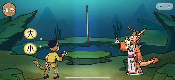 通关小技巧:用两根手指按住金箍棒并向中间滑动缩小,就能帮孙悟空找到它啦。