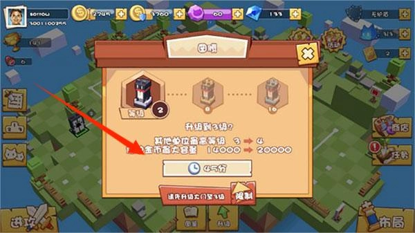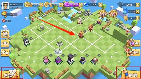点击布局,调整建筑的摆放位置,升级防御塔的等级,以此提升基地的防御能力,从而更好地抵御敌人的进攻。