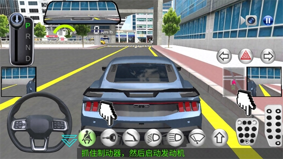 完成前期准备后就能启动驾驶流程了——左侧区域可完成方向盘的转向操作,右侧则对应油门的控制与刹车的制动等功能。