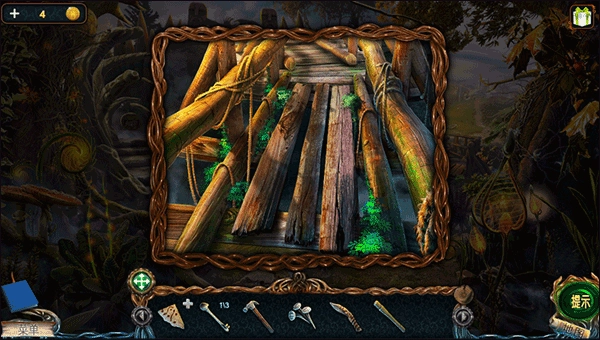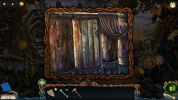 在陆续找到藏宝图、锤子(由两个部件组成,需先拼接)、棒槌、日记这类物品之后,使用组装完成的锤子将木板撬开,进而获取到刀子、钉子、木板等物品。