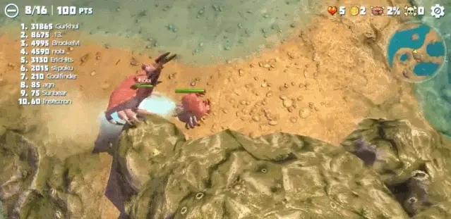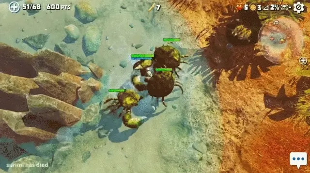 游戏的舞台设定在一座庞大的海岛上,每一局大约会有六十五名玩家加入。所有玩家在开局时,都只是一只毫不起眼的小螃蟹,想要变得更强,最主要的途径就是不断进食。