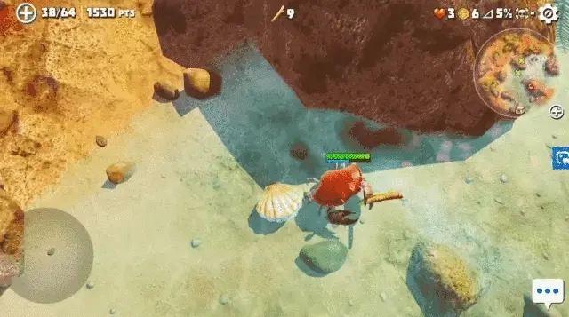 这款游戏采用了逼真的物理引擎来还原螃蟹的行动模式,玩家可以通过摇杆操控或点击屏幕两种方式来控制它的移动。不过,由于螃蟹天生只能横向爬行的特性,游戏在移动操作上的反馈感显得有些生硬。