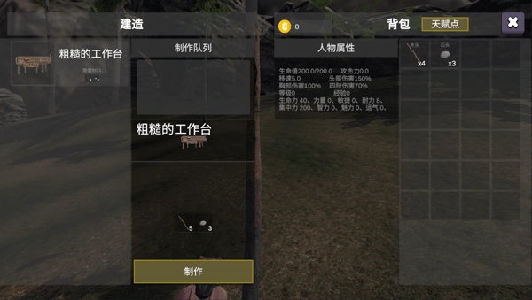 制作武器之类的物品得依靠工作台,把材料收集好后就能着手建造工作台了。