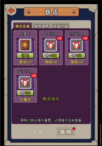 关于店铺里的每日福利包,我的看法是优先考虑购买能获取核心资源的那个就够了,剩下的可以根据个人喜好来决定是否入手——毕竟不管怎么节省,这种关键资源的投入还是不能省的。