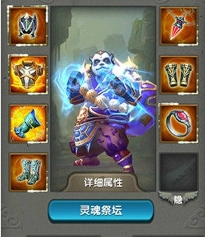 在《太极熊猫》里,我们可以看到装备界面中人物角色的下方有一个名为“灵魂祭坛”的按钮,点击这个按钮就能进入灵魂祭坛界面。