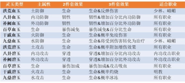 不同类型的灵玉在核心属性与套装加成上各有特色,玩家可以根据自身的培养规划来挑选适配的灵玉。