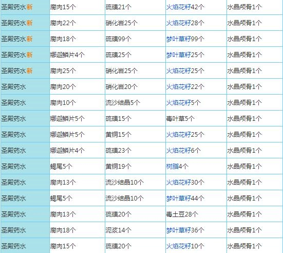 按照上面的配方,有比较大的概率可以合成出圣殿药水