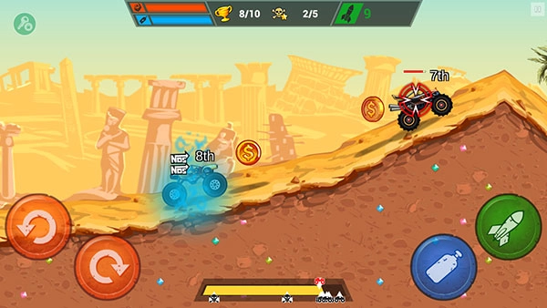 赛道上分布着加速、导弹攻击等各类道具,玩家需要不断突破自我,灵活躲避形形色色的障碍与陷阱,奋力超越对手,率先冲过终点线。