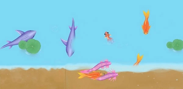玩家们初始状态是一条小蝌蚪,要是用最直白的方式跟你们说,这就和“大鱼吃小鱼”的玩法差不多。