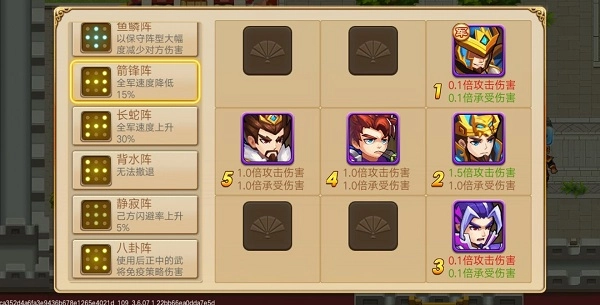 在《三国演义吞噬无界》的新版本里,阵法系统新增了升级功能。部分阵法升级后,不仅能获得物理或元素伤害加成,还会解锁独特的阵法特效。其中,长蛇阵升级后的特效尤为实用——它能额外提升0.5的攻击距离,这一特性让它在众多阵法中具备了独特的优势。