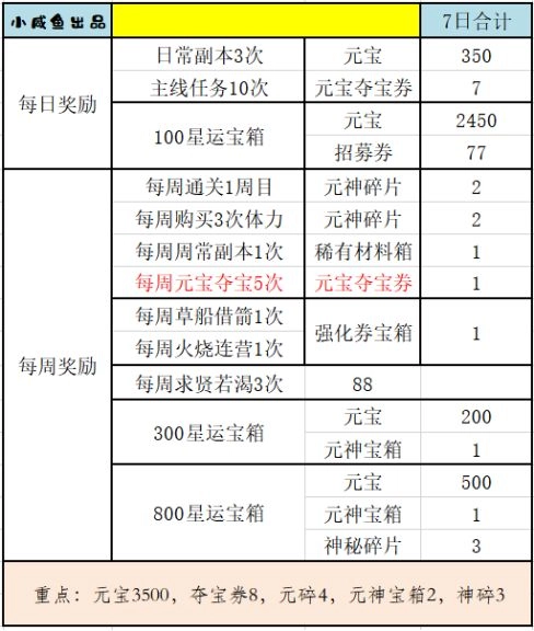 通过整合每日与每周的数据,我们能够得出每日星运的获取情况具体如下: