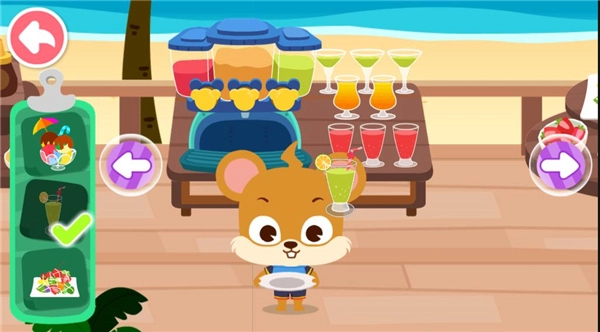在屏幕左侧挑选一款合心意的饮品,对应的小动物就会自行移动到调配区域。