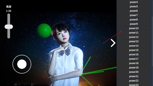 系统了数十种可供免费调用的姿态模板,用户只需点击目标姿态选项,界面左侧的虚拟模特便会同步呈现对应的肢体动作。