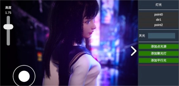 提供三种灯光 点光源 聚光灯 平行光