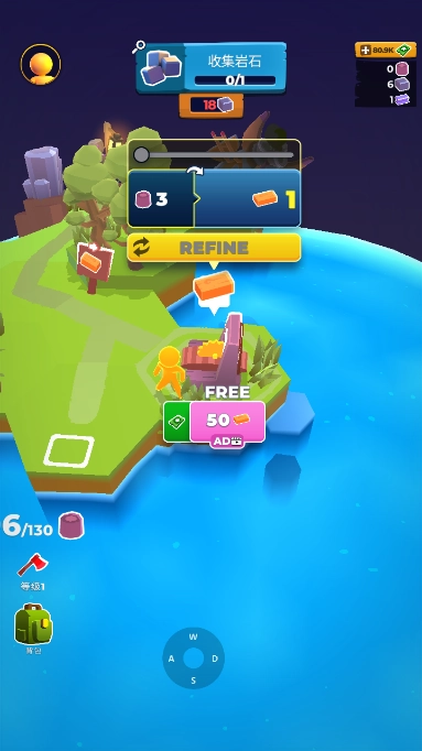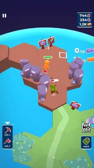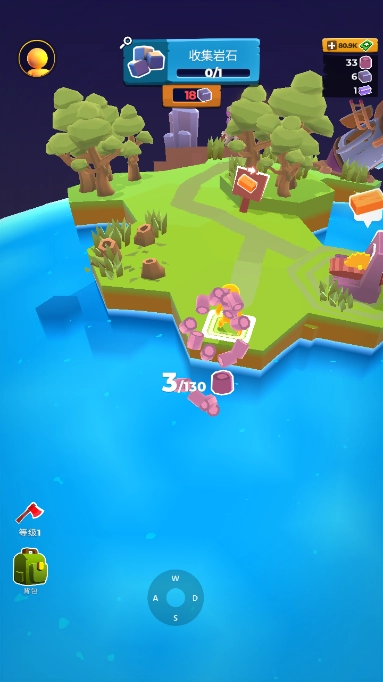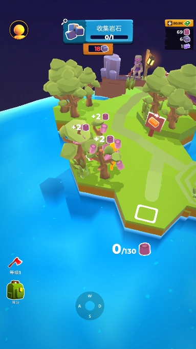 在关卡挑战中,通过砍伐木材,获得最初的资源