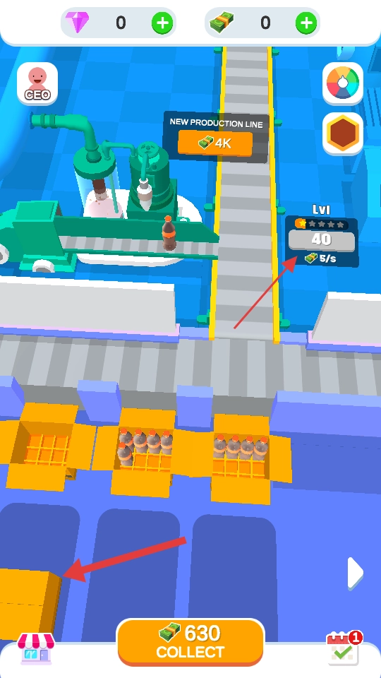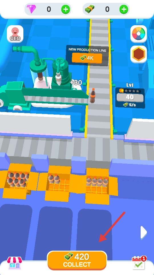 2、等汽水装箱,点“COLLECT”收420钱,积累资金,用于升级。