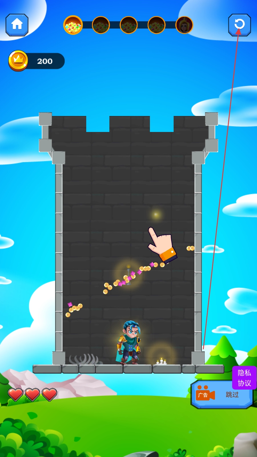 3、若失误,点击右上角重置按钮,重新挑战当前关卡。