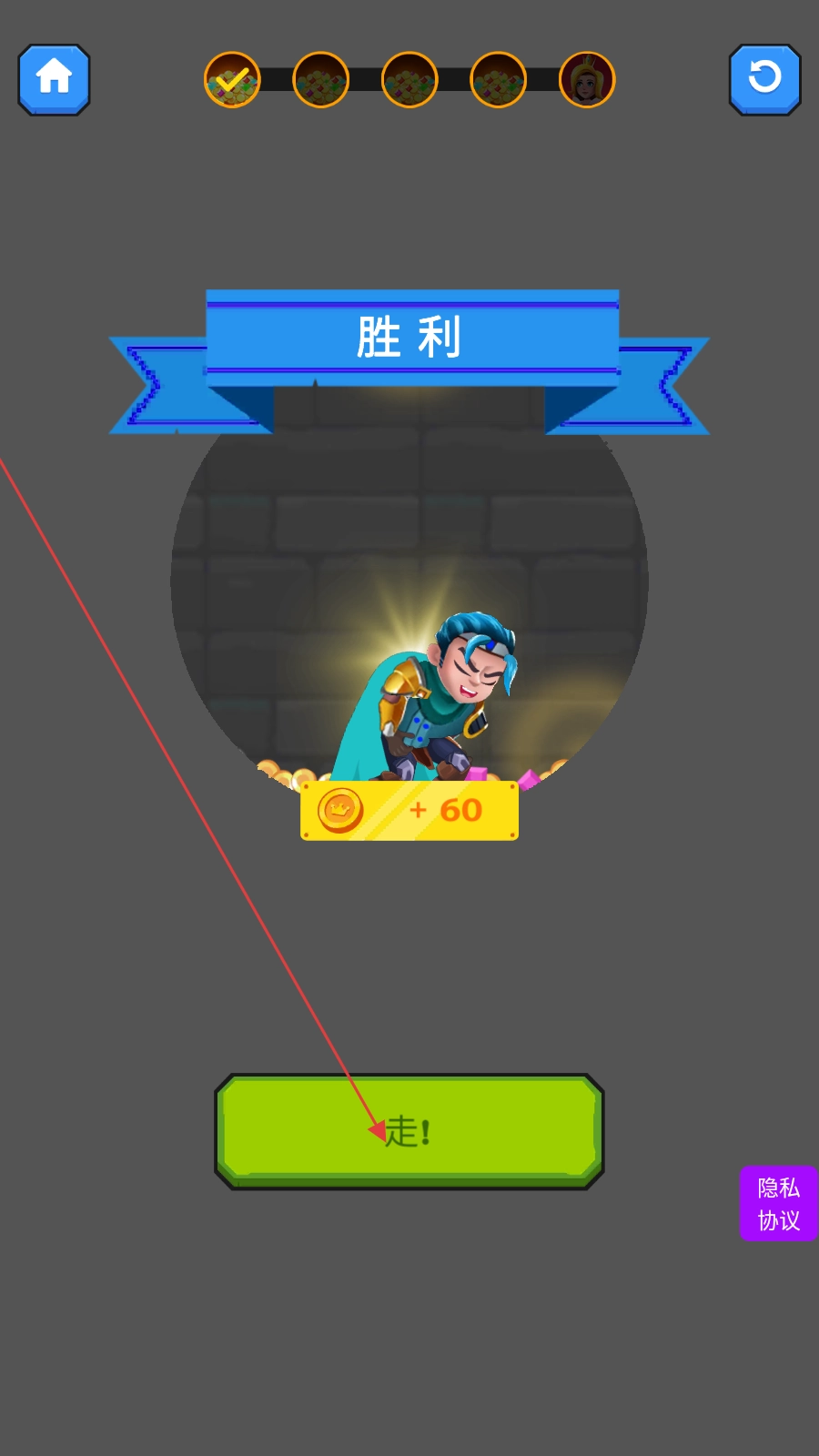4、成功通关后,点击【走!】,进入下一关继续冒险。