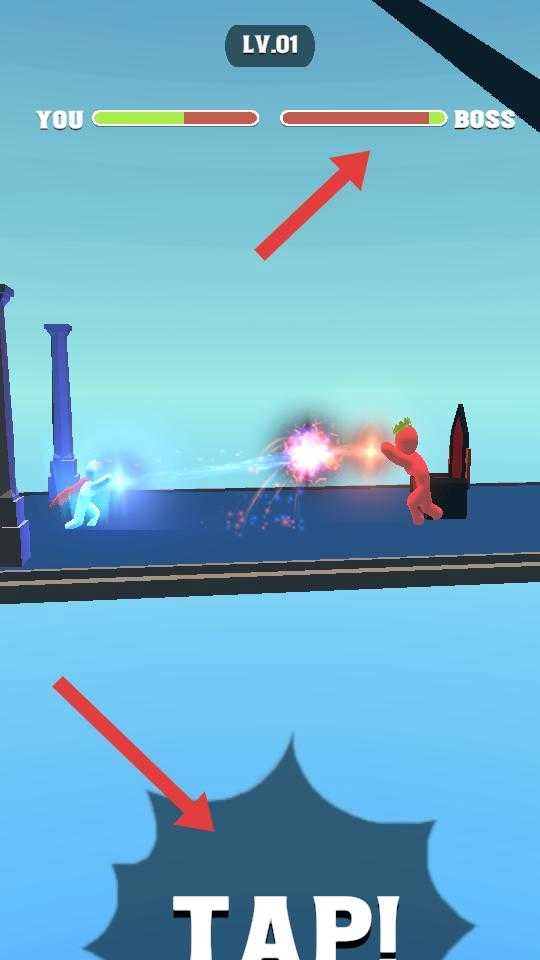 战斗时,点击屏幕执行攻击等操作,持续和敌人对抗,全力击败敌人,达成关卡的战斗目标。