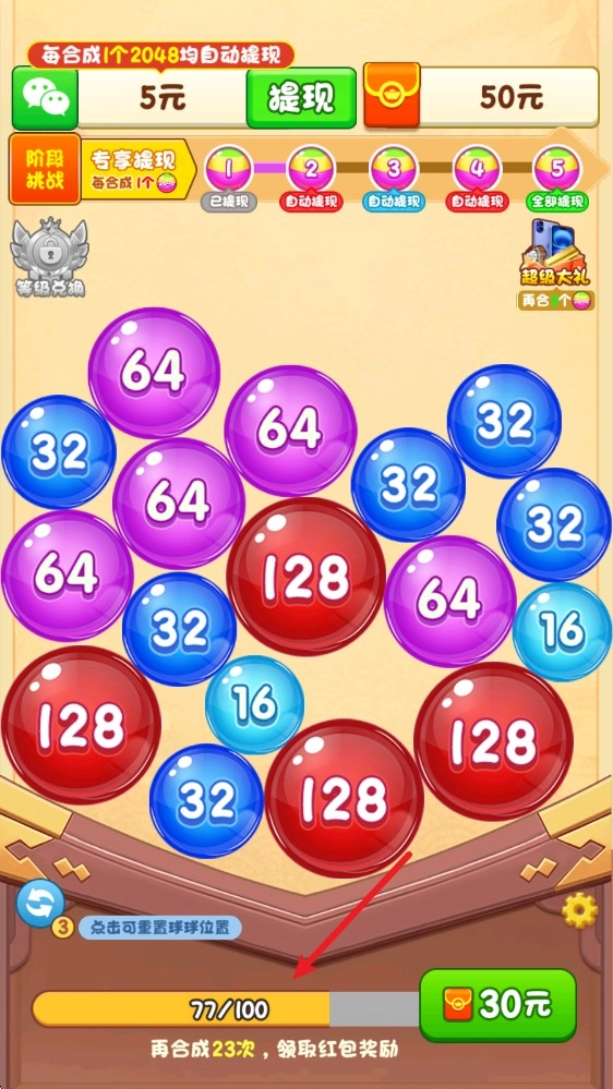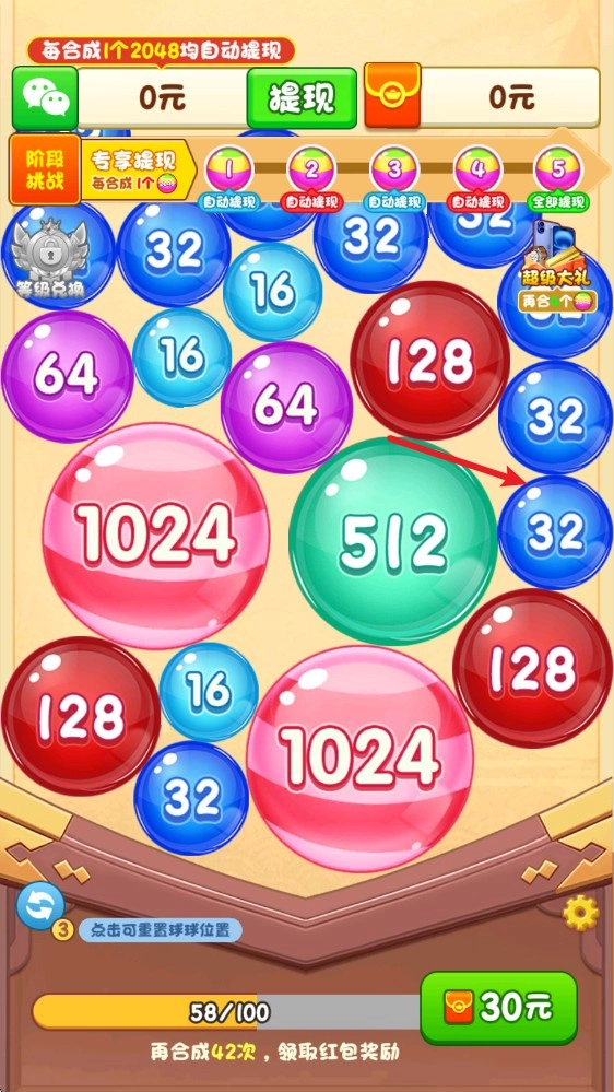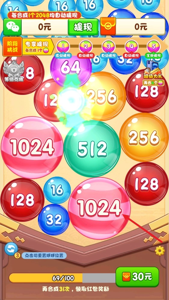 合成出2048的彩球就能够获得对应的奖励了。