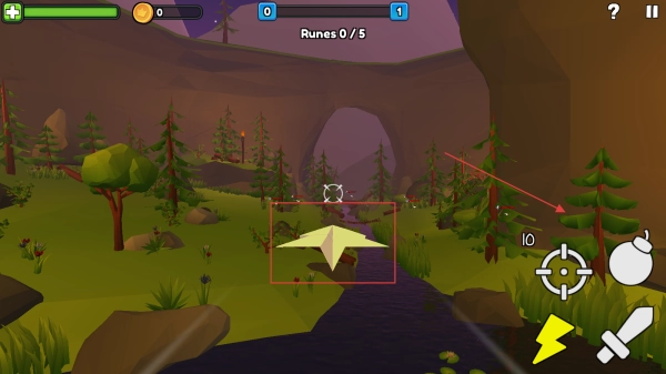 进入游戏场景后,借助屏幕上的操作按钮操控纸飞机的移动与攻击,把控纸飞机的飞行方向,让它避开障碍物和敌人的攻击。