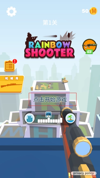 玩家完成一局游戏后,返回主界面,点击指定图标和开始按钮,即可进入彩虹射击关卡。