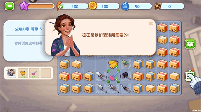 在这个地方,玩家得将相同的物品匹配到一起,促使它们合并。