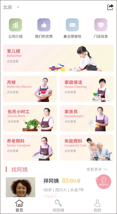 这是一款依托地理位置信息的家政服务类移动应用,专注于为用户提供多样化的家庭服务选择,包括但不限于照看婴幼儿的育儿师、照料产妇的母婴护理员、负责日常家务的家政人员、照护老年人的护理员、面向外籍家庭的专属服务、医院陪护人员、按周期预约的小时工、临时按需的钟点服务以及家庭清洁等。