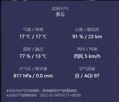 点击这个功能模块后,就能看到符合国际标准的空气质量指数信息。
