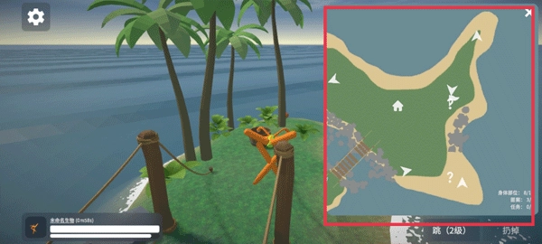 通过跳跃快速抵达另一座小岛,获取新的图案或身体部位,你还能点击右上方的地图查看自身所在位置,接下来就继续寻找新的四肢来捏造生物吧。