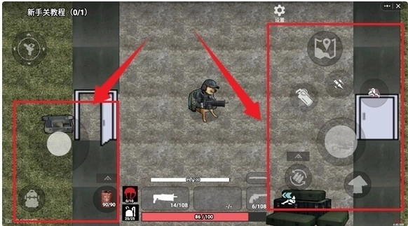 游戏开局设有新手引导环节,左侧区域用于操控角色移动,右侧区域负责控制武器开火,帮助玩家迅速熟悉操作。