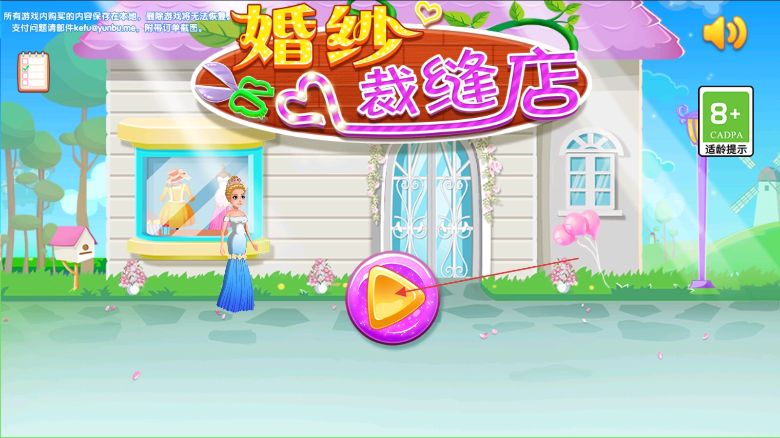 打开“公主婚纱裁缝店”这款游戏,找到紫色的播放按钮并点击,即可进入游戏。
