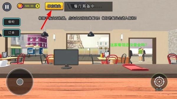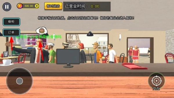 点击操作按钮开启营业,接待有着不同需求的客人,并获取他们的餐食订单。