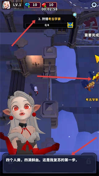 找到考古学家后,与他们展开战斗,对考古学家发起攻击,完成狩猎任务,一步步达成复仇目标,增强自身的实力。