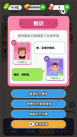 在相识界面,浏览人物信息后,点击夸赞对方的穿搭能够提升好感度。