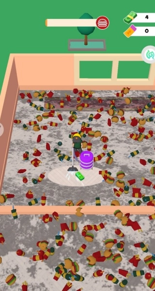 挑选好角色后,操纵你的角色在堆满垃圾的餐厅里,借助各类清洁工具完成清扫任务,这个过程让人感觉十分解压。