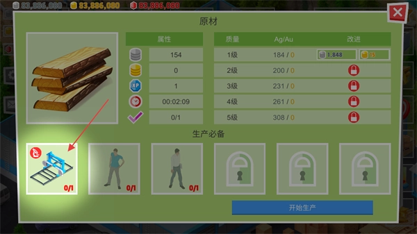 解锁产品后,查看生产所需的原材料数量,确保拥有足够的资源。