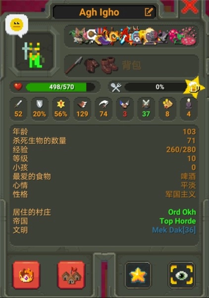 把一些同种族的单位聚集起来建立国家,要保证其他单位没有携带任何装备,然后让你选定的那个单位成为国王。国王在过一段时间之后会得到金牙这个特质。而单位随着年龄增长,自身会逐渐获得明智的特质。