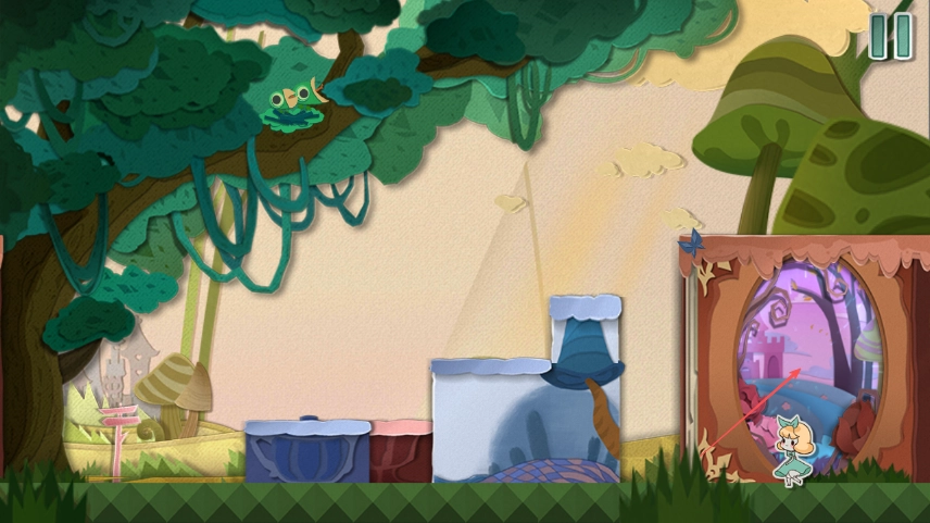 操控纸片少女靠近场景里的桶,利用桶来完成移动与跳跃的动作。