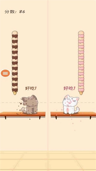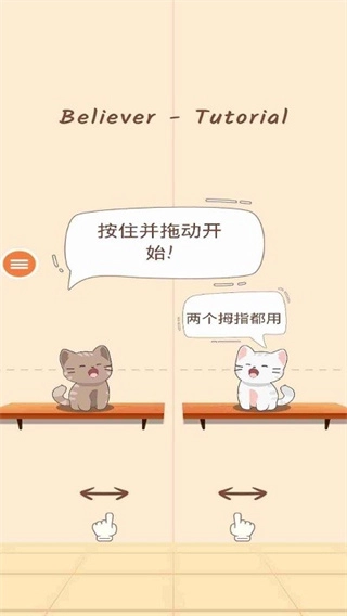 游戏的操作方式十分简单,只需分别按住屏幕的左右两侧,就能控制猫咪移动位置。