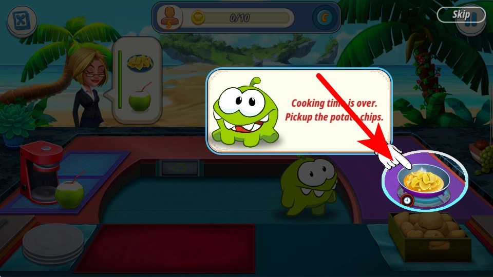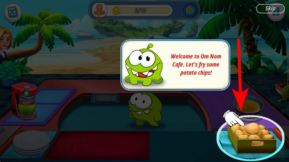 根据提示,点击装有土豆的箱子,准备开始炸薯片。