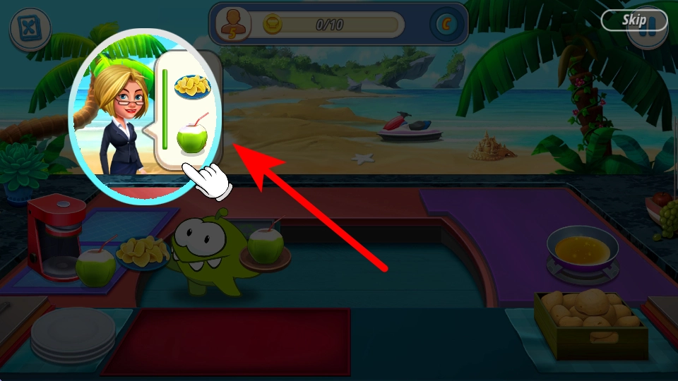 按照顾客订单的提示,备好薯片与椰子饮品后安排配送。