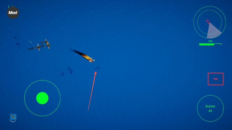 进入游戏后,你可以借助屏幕左侧的绿色虚拟摇杆来操控自己的飞机移动。