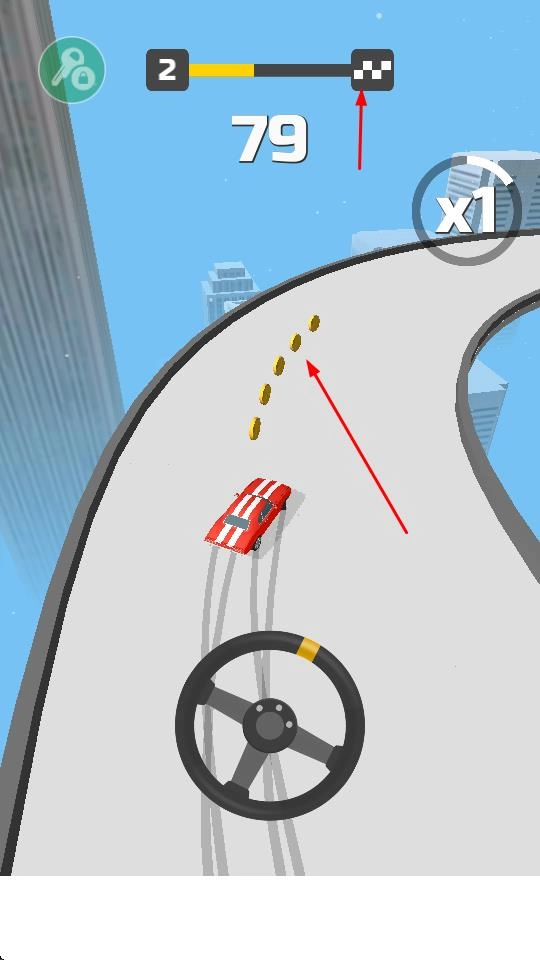 转动方向盘,操控赛车驰骋于高空赛道,通过调整行驶方向躲避赛道边缘,让赛车始终平稳向前。